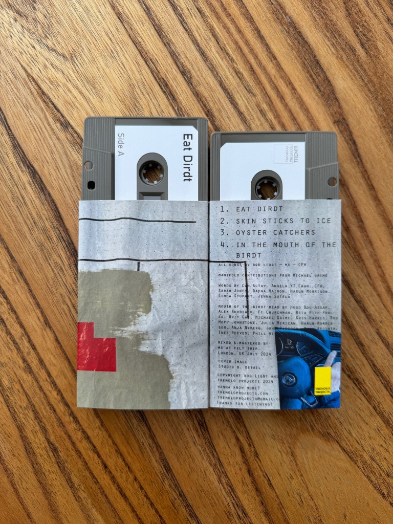 Recorded across a two year period, Eat Dirdt mixes field recordings, synthesised soundscapes, drum loops and guitar. The lyrics were developed from a collaborative process, asking artists and writers to respond to the concept of ‘microbial writing’. The resulting words were edited across the EP with a range of processes: spoken, sung, processed by synthesisers and submitted to random and chance-based processing.