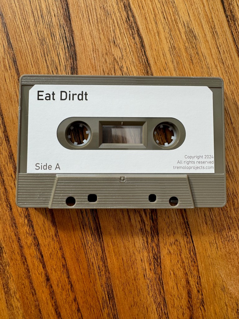 ‘Eat Dirdt’ is a new EP of 4 (with bonus tracks for the tape release) sci-fi wave / post rock songs on coca-brown cassette with an 0-card cover – it’s the 2nd release from the London duo and sees them further exploring a soundscape of cinematic, epic yet dirty songs that poke around the edges of several genres, including ambient, rock, synth wave, sci-fi wave and spoken word.